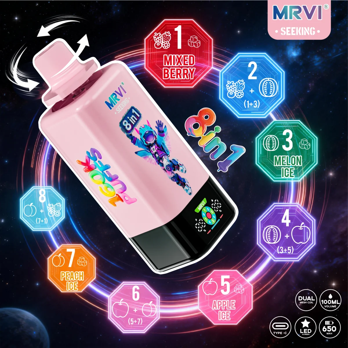 One of the most innovative aspects of the MRVI Seeking 160K is its flavor switching capability—a feature that addresses one of the most common complaints about traditional disposables: being stuck with a single flavor for the device’s entire lifespan. With the Seeking 160K, users gain access to multiple flavor options within a single device, selectable on demand.